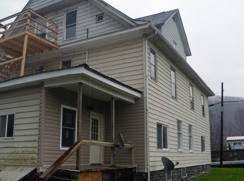 Below is a photo taken of the house many years ago. Although I am not certain of the date, I would guess early in the 20th century. Notice the porch at that time did not have the skirting. However, when we removed the two layers of plastic siding, we discovered in the paint underneath an outline of just such a porch. My guess is that this feature was added sometime before WWII when such features were popular on houses in Rowlesburg.